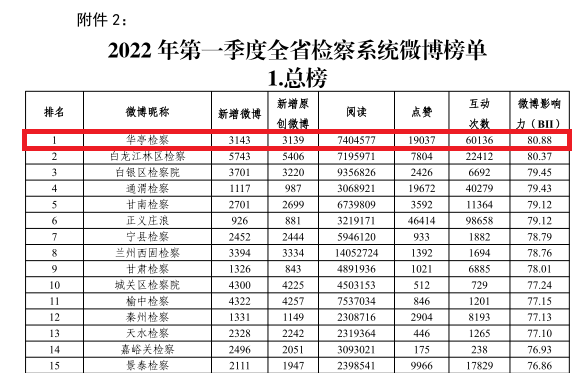華亭市檢察院奪得微博榜單及...